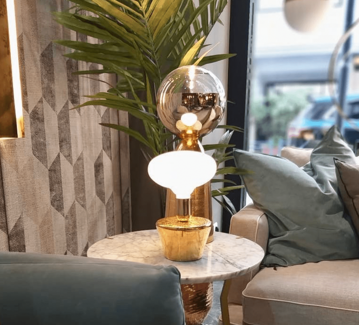 Le design si épuré de ses lampes nous a immédiatement séduit. Quand la décoration contemporaine rencontre le savoir-faire Marocain. Coup de cœur pour cette lampe est presque entièrement dorée, seule la dernière moitié de la sphère reste translucide. Une très jolie touche à exposer aussi bien dans son salon que dans sa chambre, au pied de son lit.