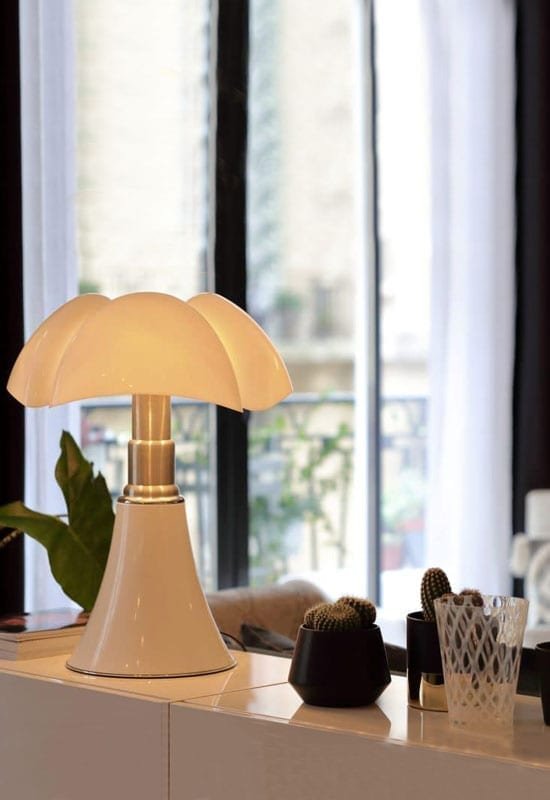 La Pipistrello sort peut-être des feuillets de Gae Alenti dans les années 60, il n’en coûte qu’elle était déjà en avance sur son temps ! Ce luminaire est également un objet à la pointe de la technologie car doté de la fonction touch. Il vous suffira d’effleurer son pied pour l’allumer, l’éteindre, et venir la caresser du bout des doigts pour régler l’intensité de la lumière. Pas étonnant que cette lampe soit aujourd’hui devenue un véritable objet de désir !